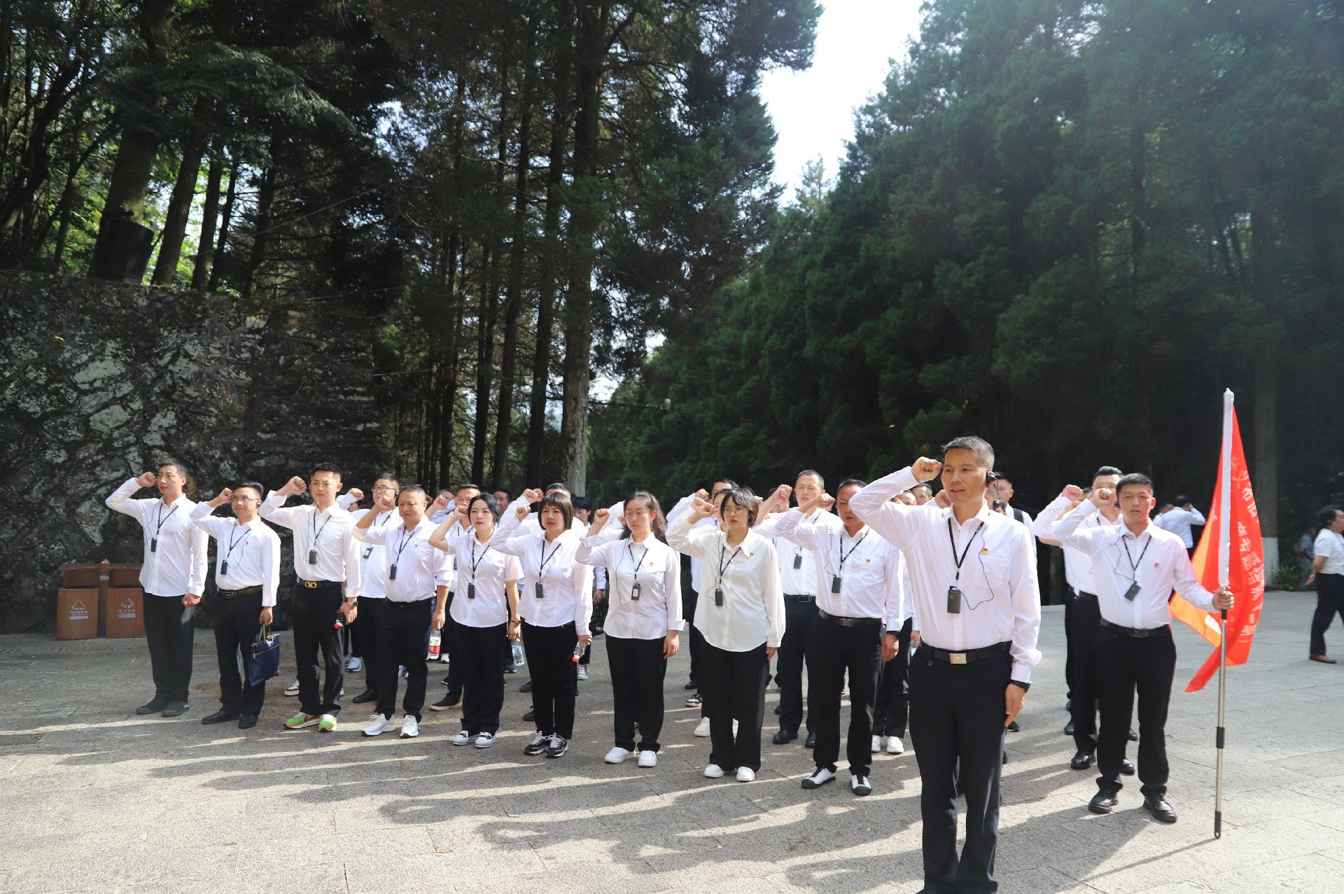 世上無難事,只要肯登攀。在中國革命的緊要關(guān)頭,革命前輩和毛澤東同志曾經(jīng)在這里點(diǎn)燃起革命的星星之火,大家步行爬上了南山之頂,現(xiàn)場朗誦了《水調(diào)歌頭,重上井岡山》,感受先烈的崇高精神。