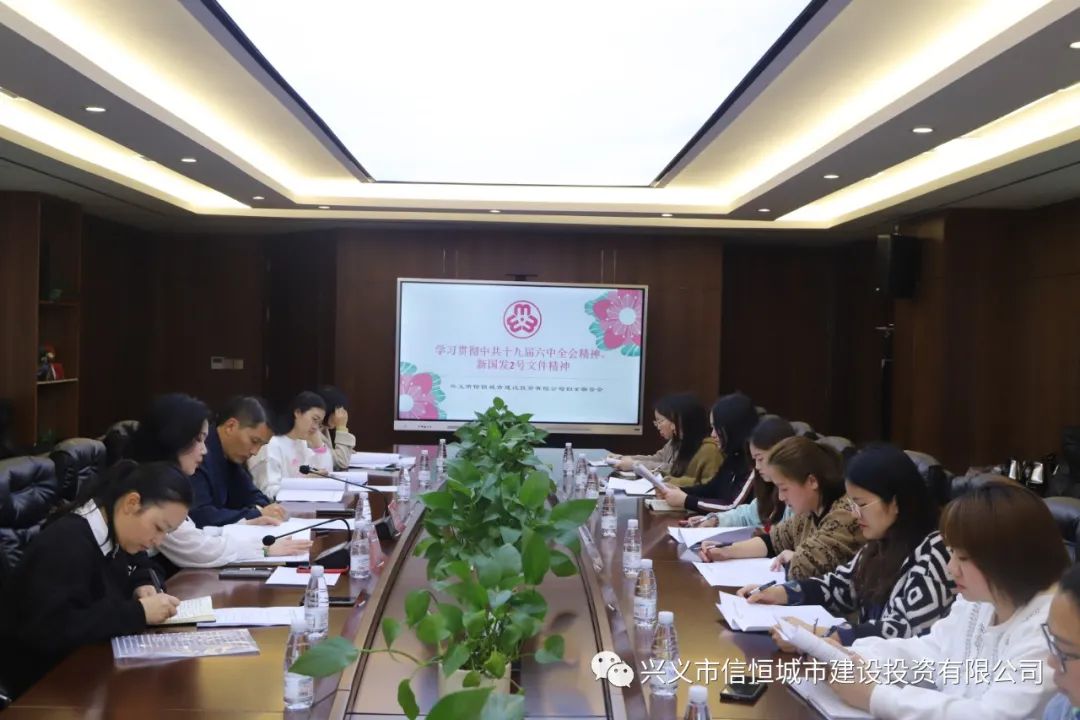 在執(zhí)委會上,公司婦聯(lián)主席韋靜傳達學習了中共十九屆六中全會精神、新國發(fā)2號文件精神;審議通過了市信恒城投公司婦聯(lián)工作制度。引導廣大女職工進一步增強“四個意識”、堅定“四個自信”、衷心擁護“兩個確立”、忠誠踐行“兩個維護”。