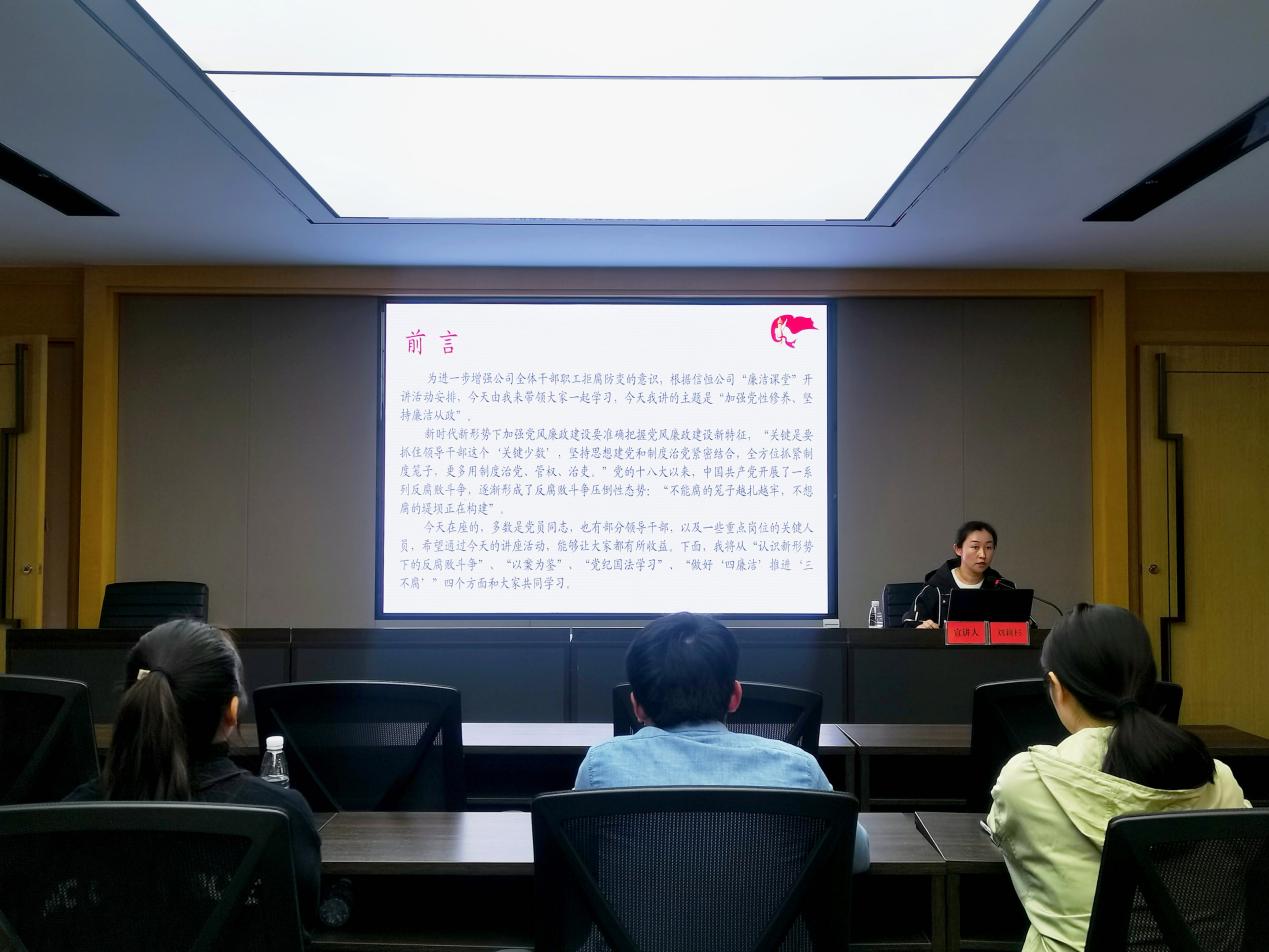 2023年3月31日,興義市信恒城市建設(shè)投資有限公司(以下簡稱“市信恒城投公司”)“貫徹黨的二十大精神·營造風(fēng)清氣正國企”第九期“廉潔課堂開講啦”持續(xù)開講。本期宣講由市信恒城投公司黨建辦主任、人力資源部部長劉莉杉同志主講,公司中層以上干部、黨建指導(dǎo)員、紀(jì)檢監(jiān)察專員等同志參加。